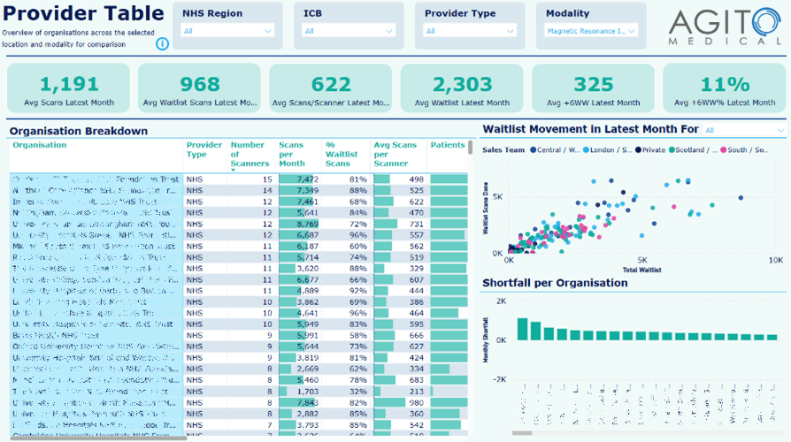 A London teaching hospital reduced diagnostic imaging waitlists by ~45% within five months, enabled by Agito Medical’s rapid equipment supply. Today, with Unify powering insight generation at scale, Agito Medical can replicate this success at scale, identifying high-need opportunities earlier and aligning delivery efforts with real-time indicators. This is helping transform how NHS trusts are engaged—moving from reactive support to proactive, system-wide impact